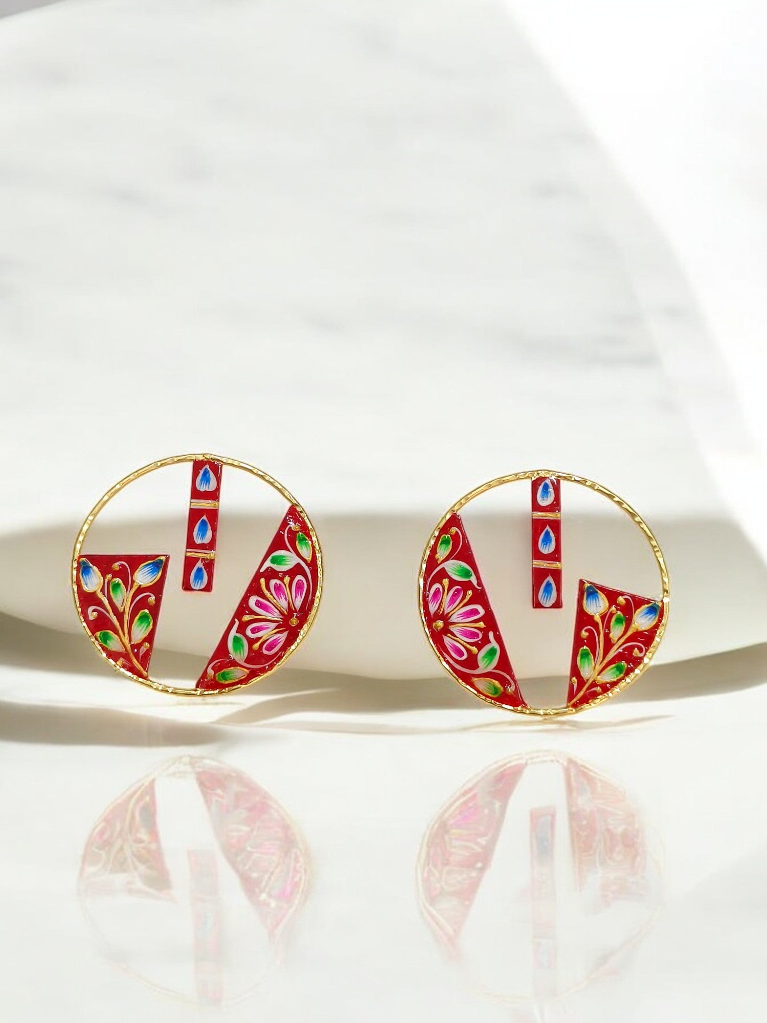 Handcrafted Meenakari Enamel Earrings – Elegant Traditional Circular Earrings with Floral Design