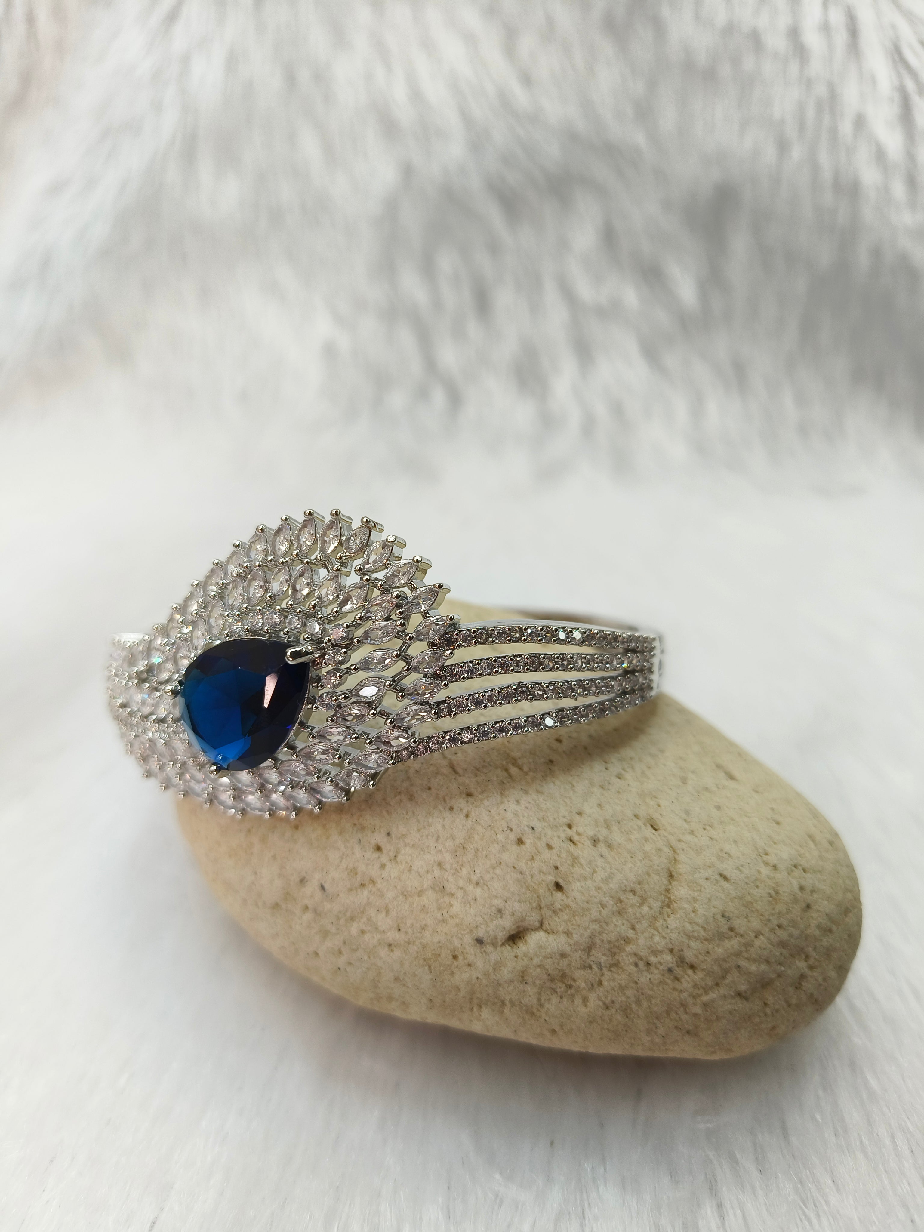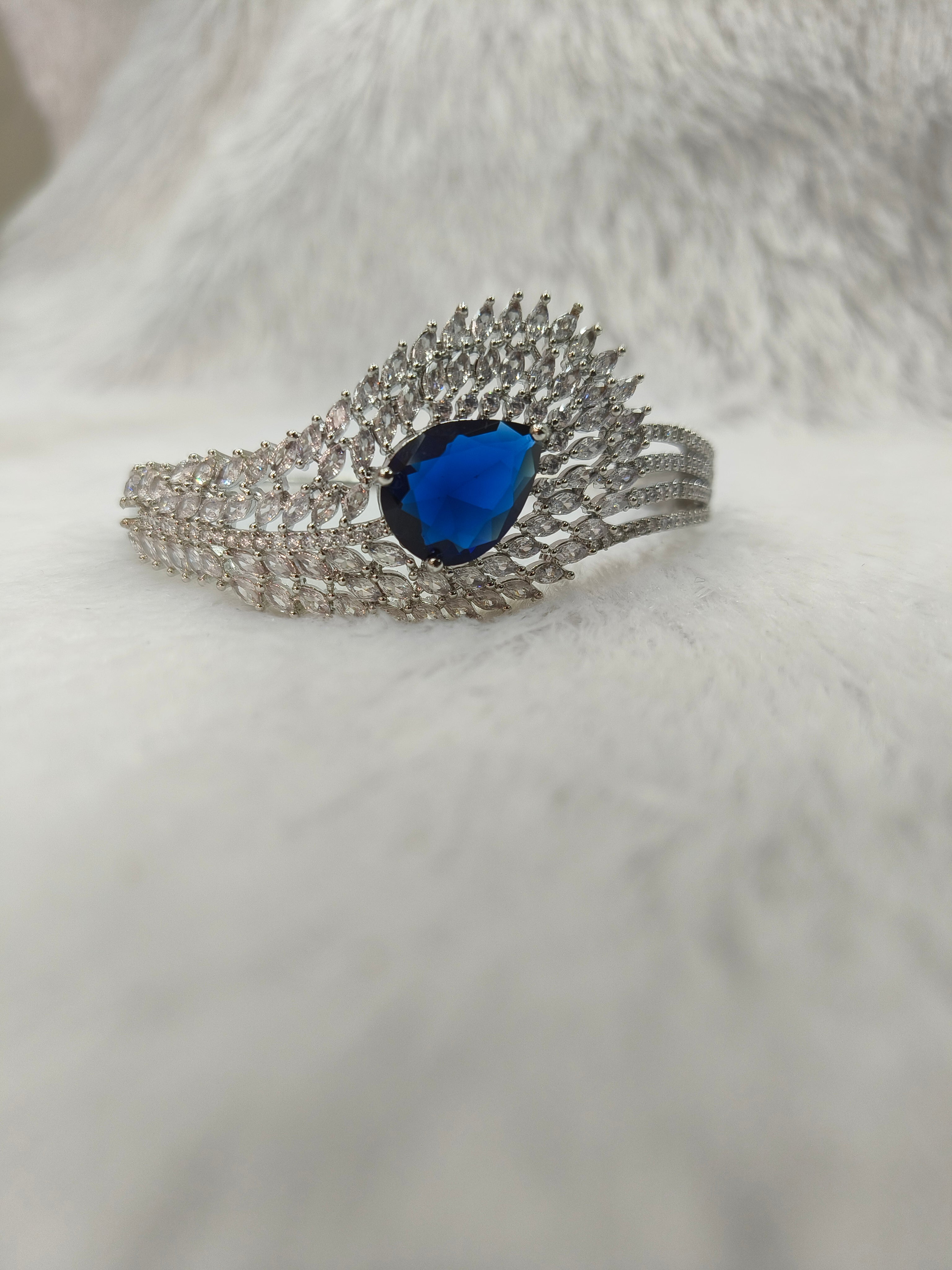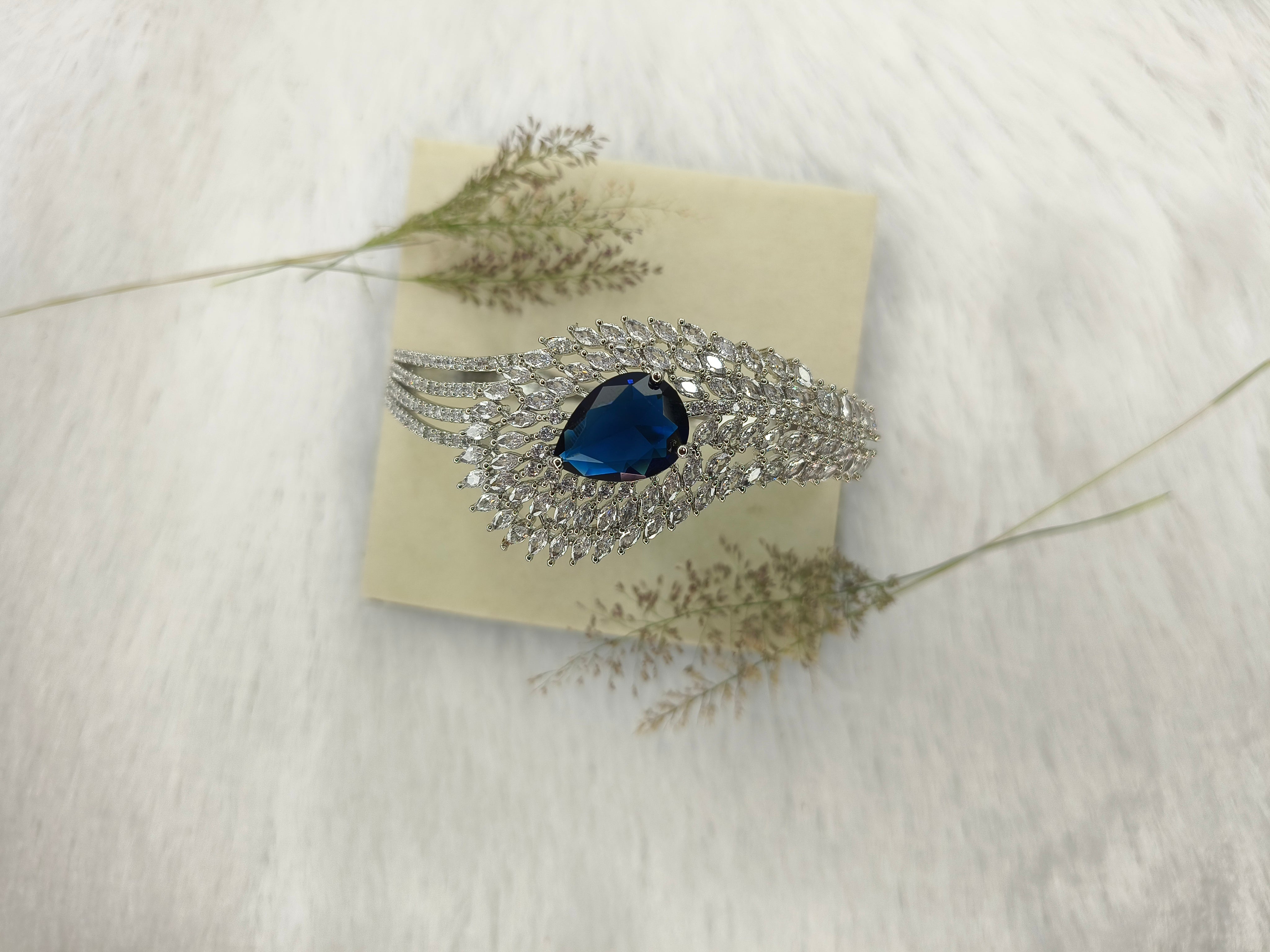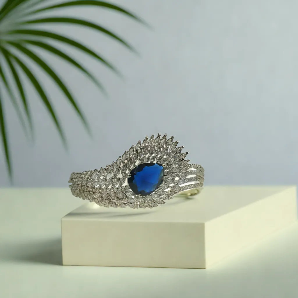 Featuring an exquisite deep blue sapphire centerpiece, surrounded by intricately arranged diamond accents, this bracelet is a masterpiece of fine craftsmanship.