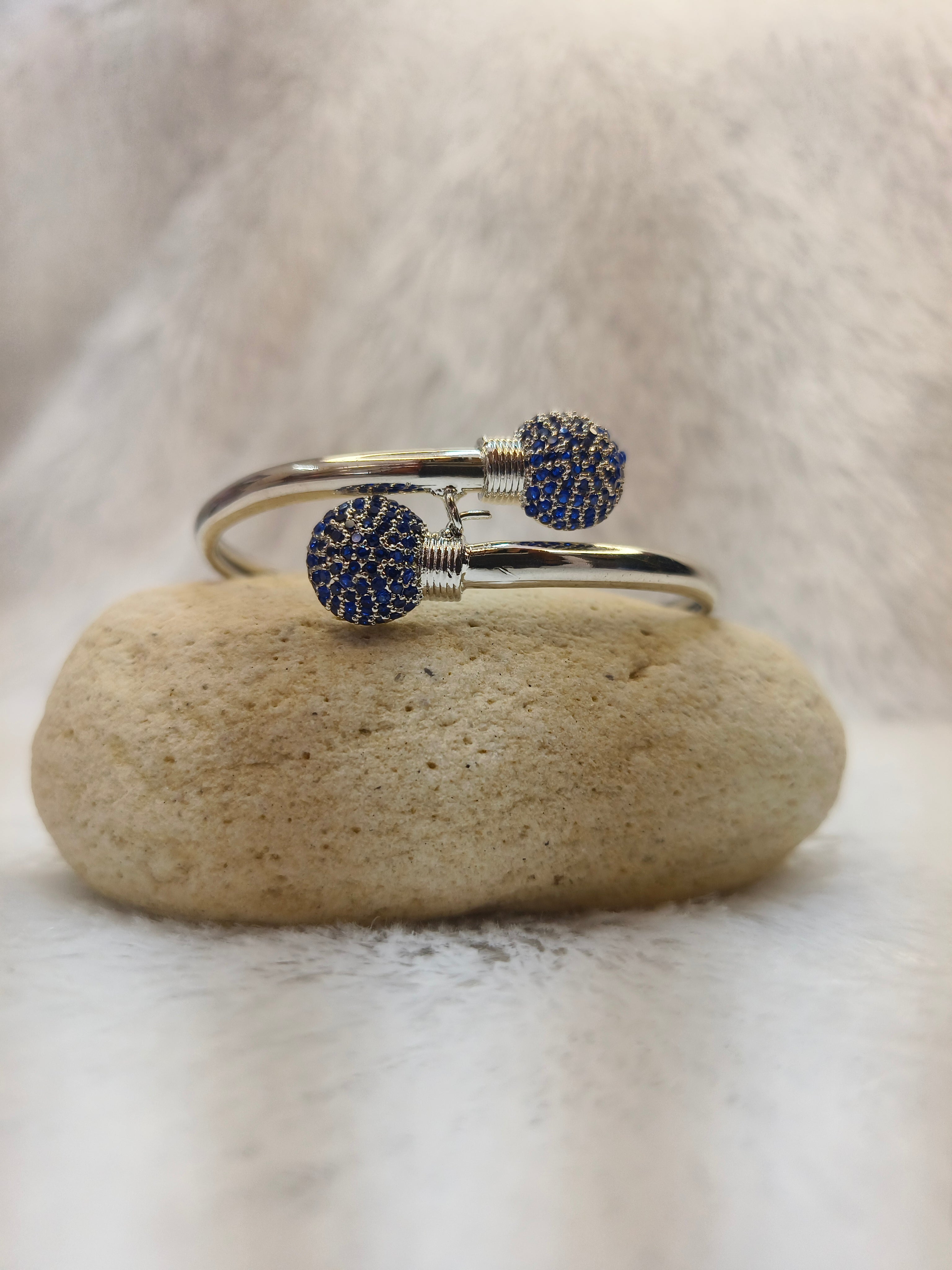 Featuring two dazzling blue crystal-studded spheres, this bracelet adds the perfect touch of sophistication to any outfit.