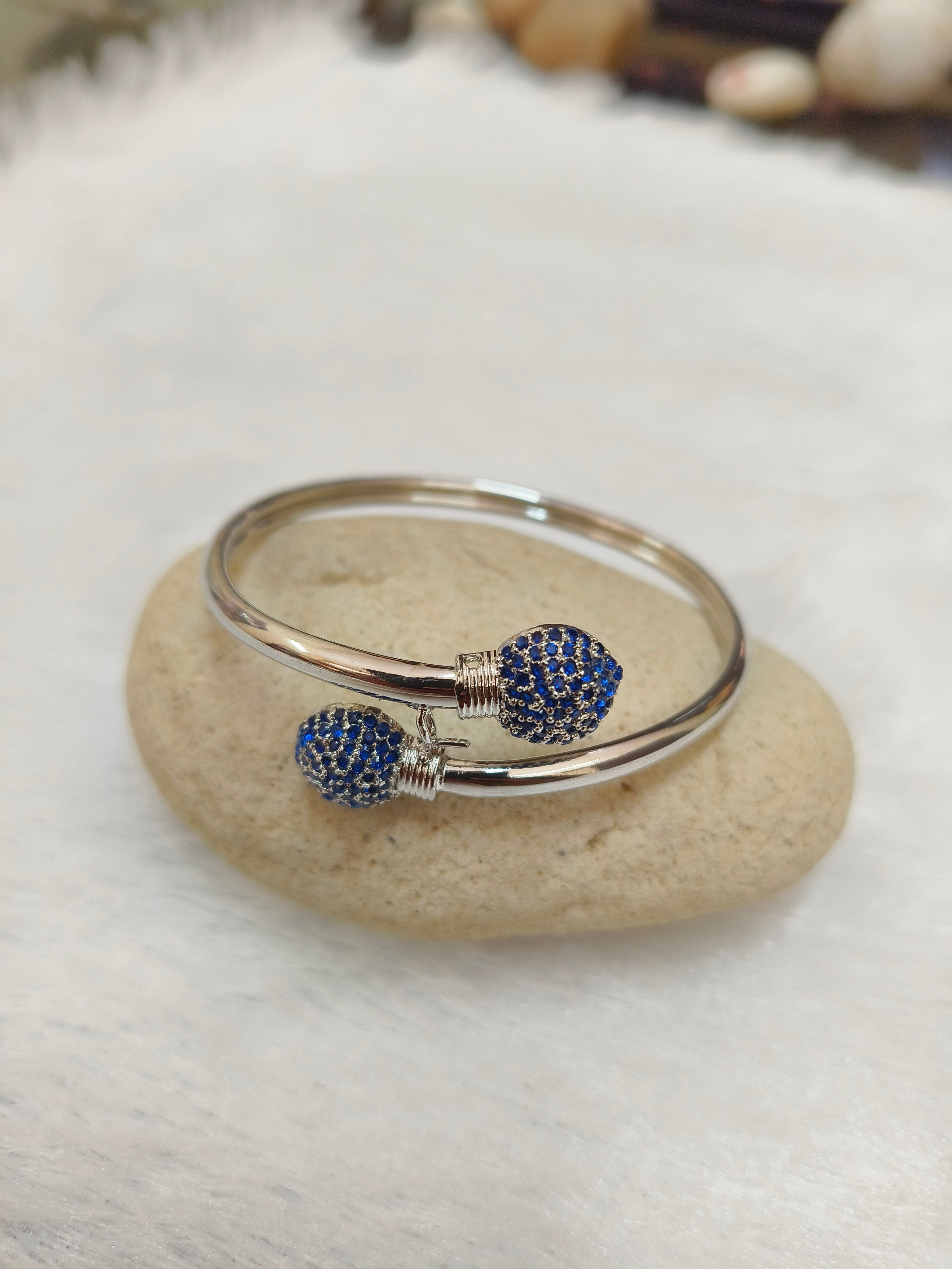 Elegant Silver AD Open Cuff Bracelet with Blue Crystal Accents – Stylish & Unique.